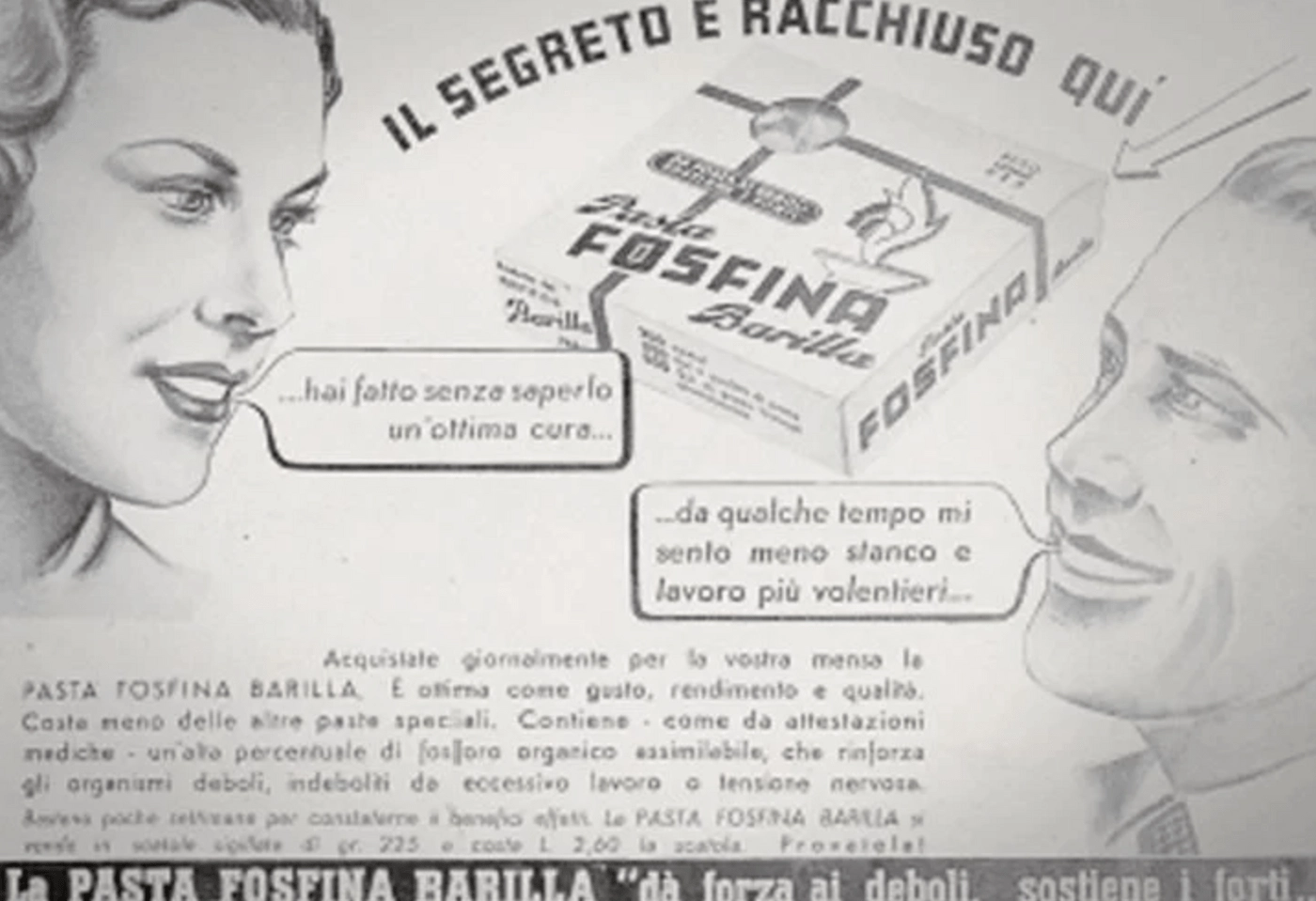 Barilla lanserte "Phosfine pasta", beriket med fosfor, den ideelle diettmaten i en kritisk periode i Italia.