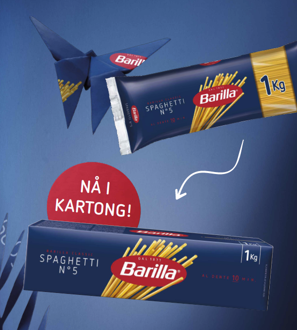 Emballasjen til én pakke Barilla Spaghetti 1 kg i plast veier 5 g. I 2023 ble det i NielsenIQ registrert 1.344.376 solgte pakker i Norge. Dette tilsvarer en plastbesparelse på 6.722 kg – over 6,7 tonn plast per år.